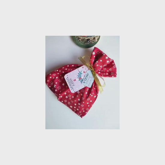 Un dono raffinato e pieno di significato. Questo sacchettino in cotone rosso con stelline bianche, realizzato a mano con cura artigianale, custodisce al suo interno una Sacra Famiglia in polvere di ceramica, dipinta a mano, perfetta da appoggiare come piccola decorazione natalizia.